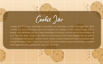 Cookie Jar to darmowe rozszerzenie Chrome zaprojektowane w celu uproszczenia zarządzania ciasteczkami na stronach internetowych. To narzędzie pozwala użytkownikom bez wysiłku odkrywać wszystkie ciasteczka obecne na bieżącej stronie, co czyni je idealnym zarówno dla programistów, jak i zwykłych użytkowników. Dzięki jednemu kliknięciu użytkownicy mogą badać i sprawdzać szczegóły ciasteczek, co zwiększa ich zrozumienie danych internetowych.